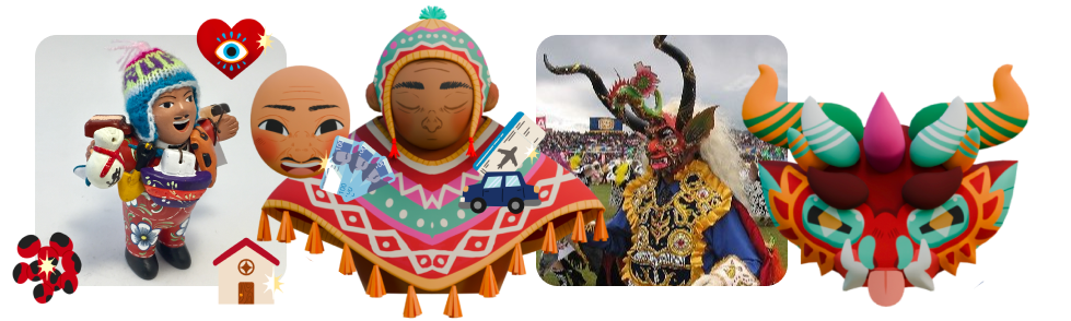 El ekeko es una figura andina asociada a la abundancia: un personaje cargado de objetos, deseos y promesas. Representa la idea de tener mucho, de aspirar a más.